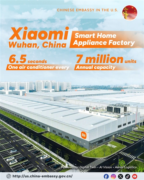 中国驻美大使馆点赞小米家电工厂:6.5秒一台高端空调 年产能700万台