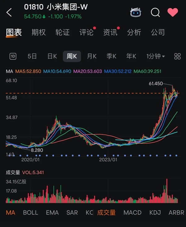 小Will并不是一个很懂投资的人,买小米股票也还要等到2021年前后。彼时,正是股市行情大涨,不少人都投身其中。不懂投资的小Will凭借着那句优秀的公司赚取利润,伟大的公司赢得人心,懵懵懂懂的买了不少小米股票,却不幸买在顶上,之后的一年内,小米的股价从36一路跌到8港元。