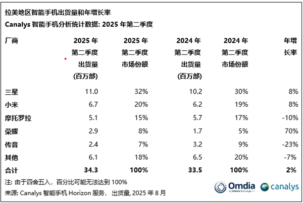 拉丁美洲二季度智能机出货量排名:小米第二 创历史新高