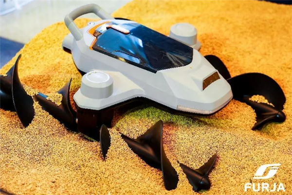 智能平粮机器人采用创新型螺旋动力系统,行驶速度最高可达2米/秒,能自适应复杂粮面环境并兼容多种粮食品种。其搭载全球首创的130KN·m/m高力矩密度防爆电机,定位精度控制在10厘米以内,精平作业后粮面高差小于15厘米,且粮食颗粒破损率接近零。