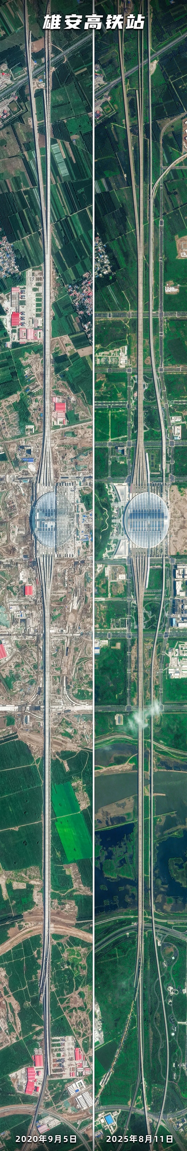 卫星看雄安新区:2020年乡间农田 2025年高铁枢纽