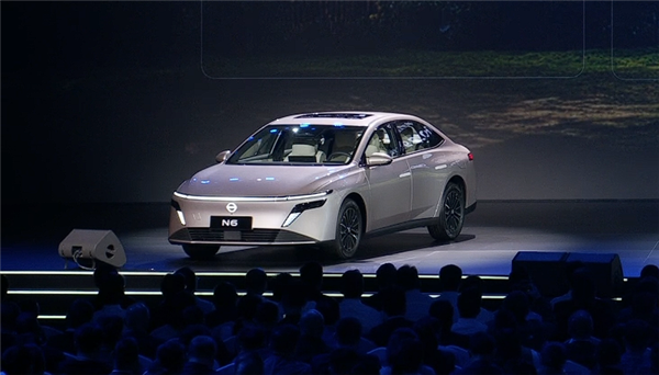 新车采用了全新的家族化设计语言,和N7类似,车头为分体式大灯组,上方采用贯穿式LED灯带设计,下方的主光源依旧延续了折线式大灯设计,车标仍然镶嵌在前保险杠上。