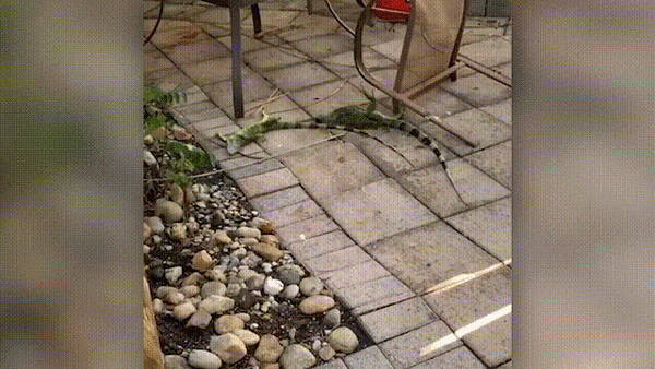 “绿鬣蜥掉落在地,只是昏迷而不是死了,遇到后切勿将其带回家,也不要近距离触摸,一旦它恢复体温,有可能会发起攻击。”