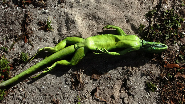 一般来说,温度降至50华氏度以下,绿鬣蜥的行动就会变得迟缓。降至30至40华氏度时,它们会被“冻僵”,会因为抓握力不够而从树上掉下来,就有可能砸伤毫无防备的行人或者车辆。