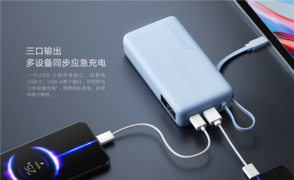 179元 小米自带线充电宝20000 67W开售:兼容苹果iPhone、华为等手机