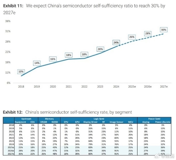 根据大摩发布的报告,预计2027年国产的内存芯片将达到26%的自给率,而闪存则会达到48%的自给率,也就是说最快两年左右时间,存储芯片的格局就会大变了。