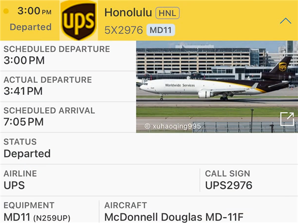 坠毁的系肯塔基UPS一架麦道-11宽体货机,机龄34.4年,载有3名机组人员,原定飞往夏威夷檀香山,近日,美国国家运输安全委员会(NTSB)公布了这起空难初步调查结果。