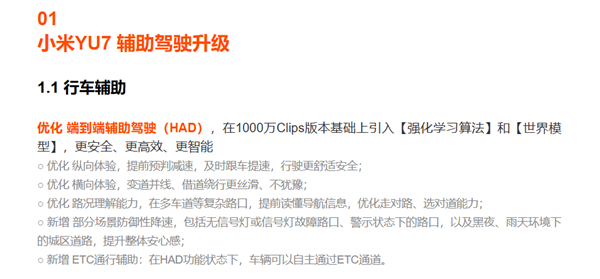 网友称小米YU7辅助驾驶更新后驾龄提升至3-5年水平 雷军:谢谢肯定 会继续加油