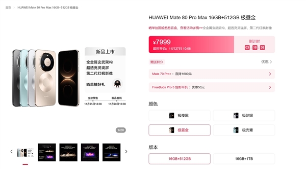华为Mate 80系列明天首销:首发麒麟9030系列芯片 4699元起