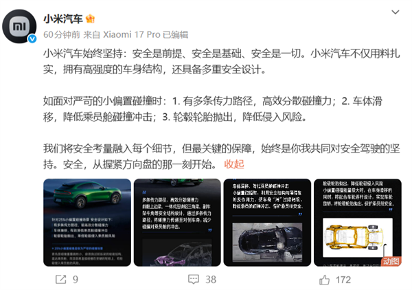 小米汽车谈25%小偏置碰撞“丢轮保命”:最大程度保障乘员舱安全