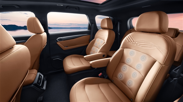 此次提供5座和6座版本,6座版本配备独立第二排座椅,支持前后滑动与靠背调节,并配备独立扶手,部分车型还提供通风、加热、按摩功能。