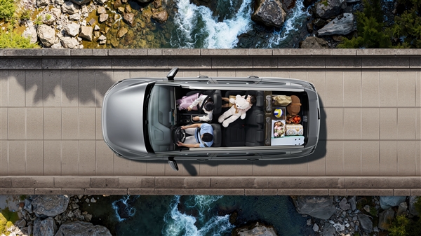 除入门版外,其他版本还可选装7座布局,选装后,第三排座椅支持纯平放倒,配合可折叠的第二排座椅,后备厢容积最大可扩展至2050升。