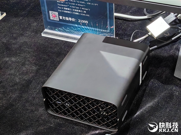 立式设计,体积小至3升,接口包括HDMI 2.1、DP 1.4 HBR3、两个USB-C、两个USB 10Gbps、一个USB 2.0、一个RJ45、一个SD 4.0读卡器。