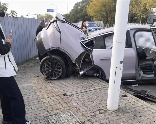 女子开蔚来EC6发生严重事故车体都断成两节:本人安然无恙