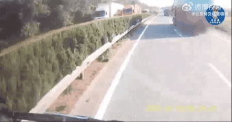 女子高速超车刚露车头就硬挤变道 被大货车顶180度掉头