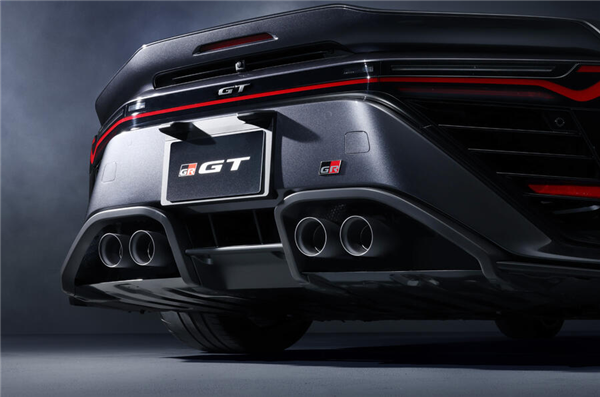 车尾采用了贯穿式刀锋尾灯,红色灯带是锋利的折线轮廓,和前脸大灯的犀利感完全呼应,尾部中央嵌着“GT”标识,旁边配GR专属徽章,强化身份和辨识度,搭配双边共四出的圆形黑化排气,营造生人勿近的暴躁氛围。