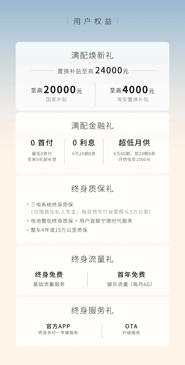 作为年代改款车型,新车增配还降价,相较于2025款车型11.98万的起售价,新车起售价格下探了2万元,车辆全系标配宁德时代电池;提供整车4年或15万公里质保,三电系统终身质保权益。