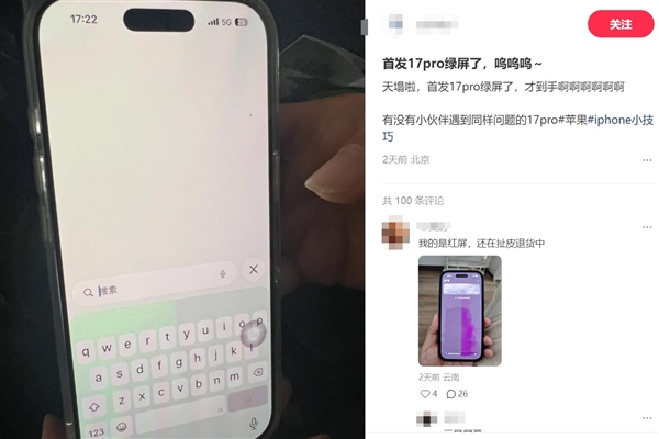 iPhone 17 Pro绿屏门引热议 网友:天塌了