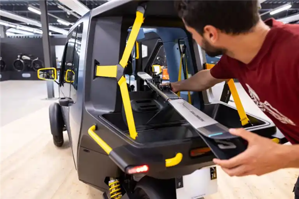 搭载22kWh电池组,目标最高时速可达120 公里/小时(原型车已达100km/h),符合欧洲L5e类别标准,允许在高速公路合法行驶,单次充电需6小时,配合踩踏助力可满足长途通勤或短途旅行需求。