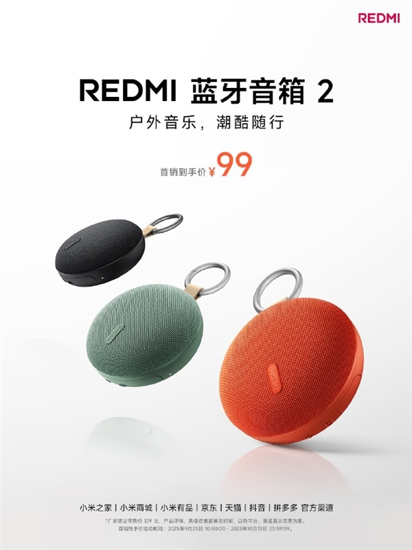 99元 REDMI蓝牙音箱2发布:5小时续航 支持USB声卡