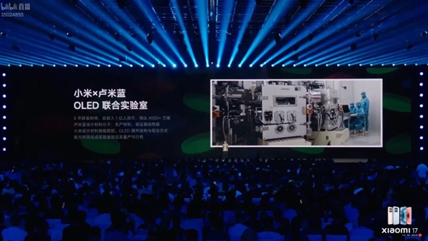 至于原因嘛,发布会提到说,这块屏幕是由小米与卢米蓝 OLED 联合实验室研发,里面的新型红色发光主材,能将发光效率提升 11.4%,才有了这样的亮度表现。