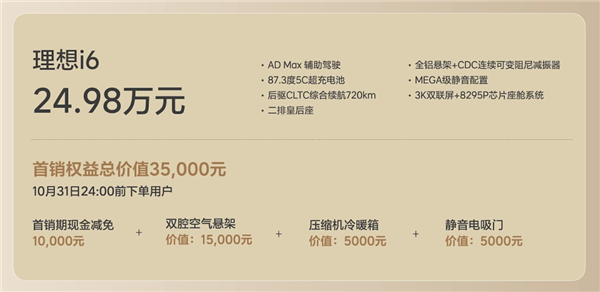关键是,i6首销期送了3万5的权益,有双腔空悬、冷暖箱、电吸门,这些配置加上前面的高阶智驾,可全是隔壁L6没有的。再加上1万元现金减免。