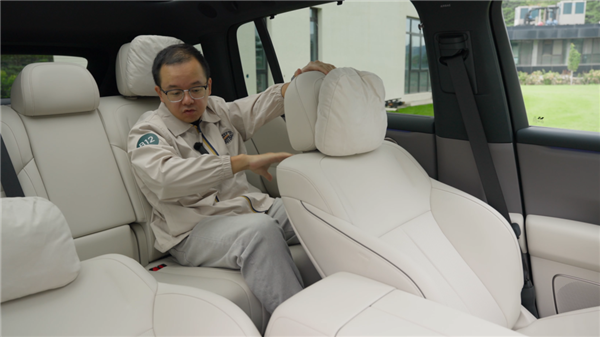 然后就是前排排座椅侧翼很高,一坐上去就很贴合,坐垫还能翘起11°,提供一个躺椅模式。虽然比不上零重力那么躺,但用来休息放松下还是不错的,而且不会影响到后排乘坐空间。