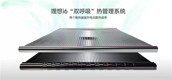 现在电车上基本会有两个散热器,一般这俩各司其职,一个负责空调,一个是给电池电机的。理想i6这回搞了个“双呼吸”热管理系统,是把这两个连到一起,就可以在比如说5C快充/的时候,让这俩合二为一,都来给电池系统散热。