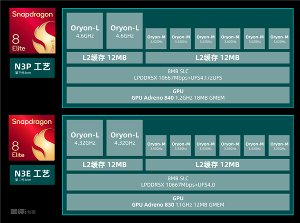 你敢信,高通这次直接把超大核的最高主频,从上一代的 4.32GHz,拉高到了 4.6GHz,包括性能核的主频也来到了 3.62GHz,这个频率已经直逼部分桌面级处理器,简直恐怖如斯!