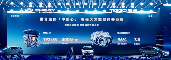 动力方面,奇瑞是国内唯一实现“三大件”全栈自研自制的自主品牌,新车搭载奇瑞自研的2.0T发动机,最大功率192kW,峰值扭矩400N·m,传动系统分别匹配8速自动变速箱或7速双离合变速箱。