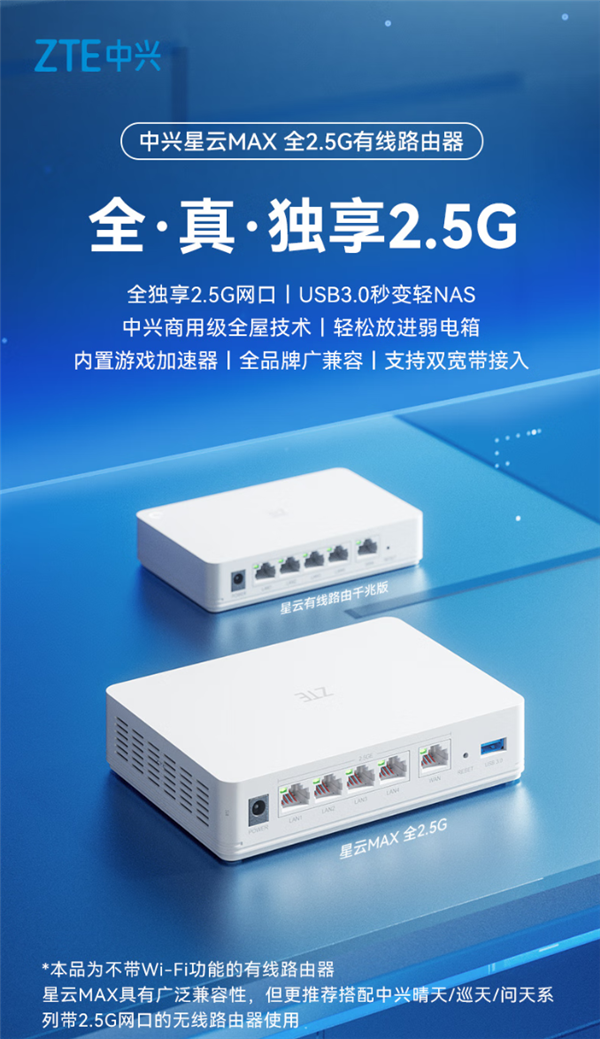 9月29日消息,中兴最新上架了星云晴天全2.5G有线主路由,售价269元,是一款全新的弱电箱神机。