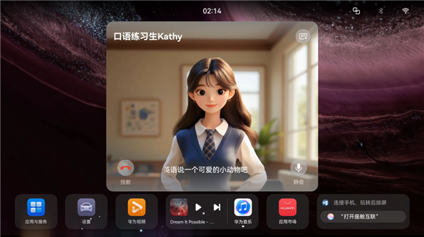 此外,小艺还上线三大智能体,覆盖更多驾驶场景:停车时(P档)唤醒“小艺小艺,叫口语陪练”,口语练习生Kathy会以大窗口弹出并显示字幕辅助练习;开车时(D档)则变成小巧“胶囊”样式,不影响驾驶注意力,适合利用碎片时间练口语。