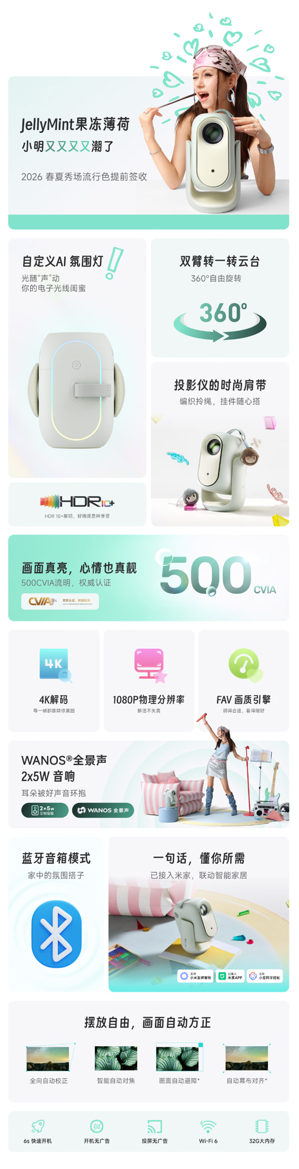 到手价1089元!小明Q6智能投影仪发布:500CVIA流明亮度、接入米家/小爱