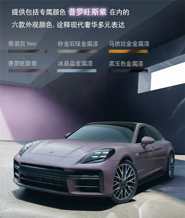 隽永版外观最显著的特点是专属普罗旺斯紫 (Provence) 车身颜色,这一配色不在保时捷暗影和梦想系列的任何选装方案中,甚至传奇系列也没有,是保时捷设计史中经典灰色的现代演绎,饱和度降低,更显成熟内敛。