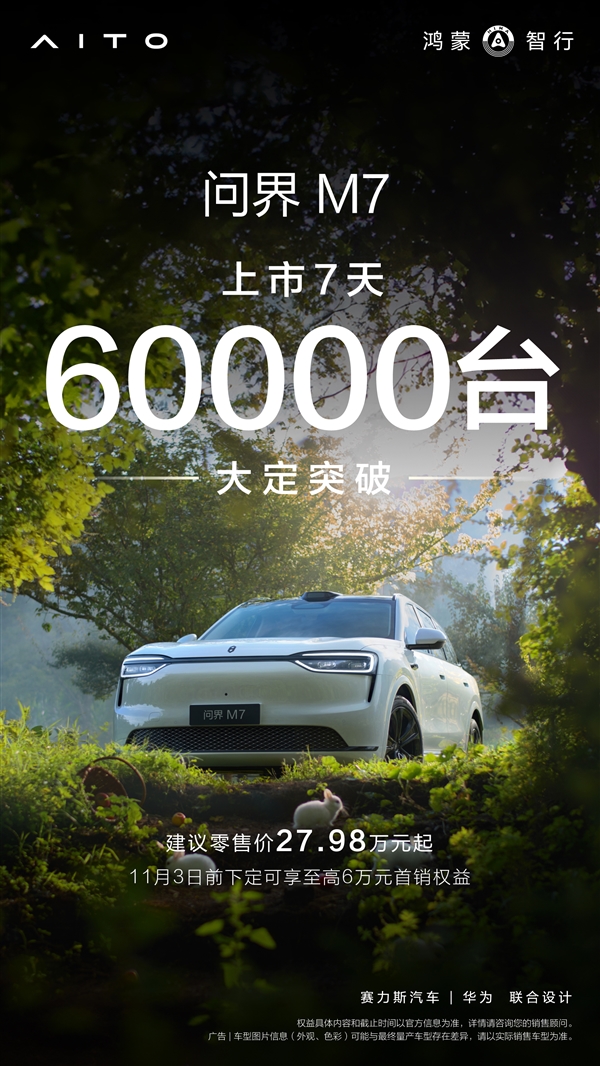 9月30日消息,毫无疑问,当前问界是中国第一豪华汽车,牌子彻底立住了!鸿蒙智行官宣,全新M7上市1周累计大定突破了60000台。