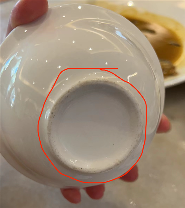 瓷碗在烧制前,要先把碗胚装进上有盖、下有底的匣钵,碗底一圈会接触到匣钵。如果上了釉,反而会导致这个碗被粘住。反正瓷碗本身就放桌上日常使用,也不需要碗底光滑,自然静置就变相做到了遮挡缺陷。