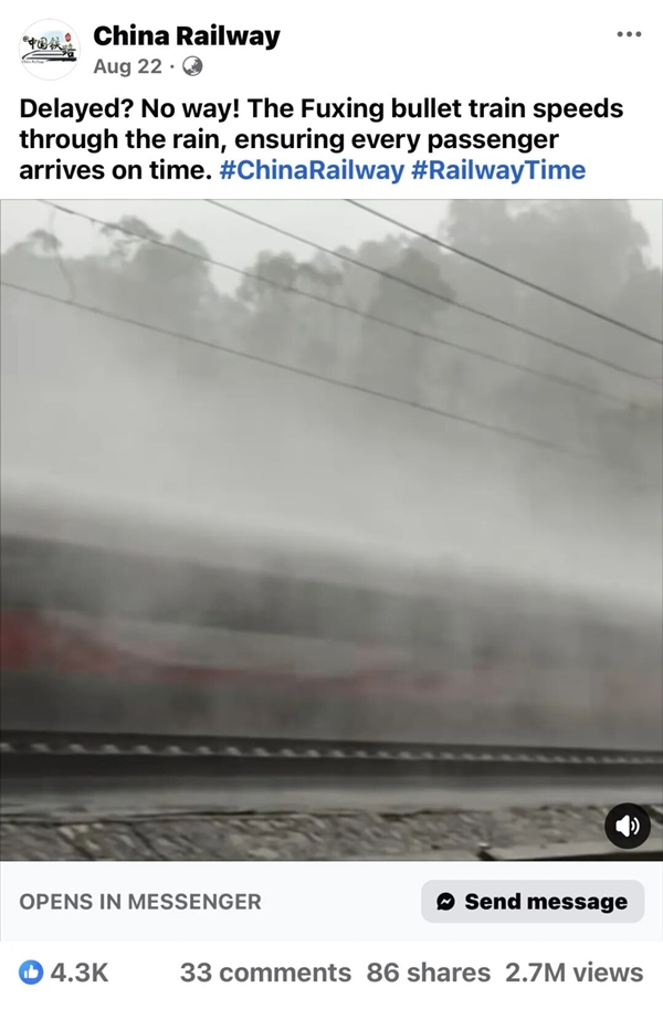 复兴号高铁雨中飞驰赶路 “雨雾”激荡:国外网友集体羡慕