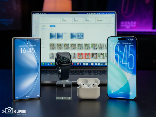 之前蓝厂就已经实现了跟苹果大部分设备的互联互通,vivo 手机能直接配对 Apple Watch 和 AirPods,甚至还能远控 Mac,iPhone 上的电话、消息和通知,也能直接无缝流转到 vivo 手机。
