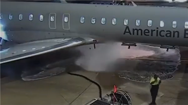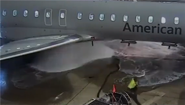 美国一机场工人操作失误致高压燃油管脱落 眼瞅航油白白喷射1分钟