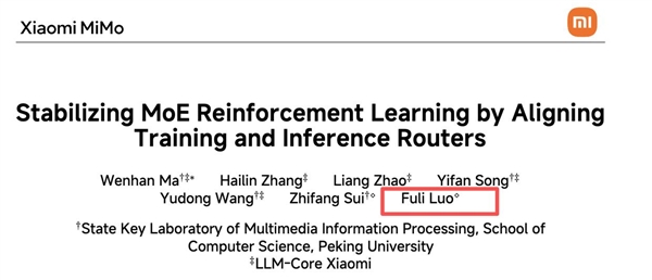 据媒体报道,小米和北京大学联合署名的论文近日发表于arXiv,曾被曝获小米集团创始人兼CEO雷军以千万年薪招募的DeepSeek“天才少女”罗福莉,就出现在了这篇论文的通讯作者之列。