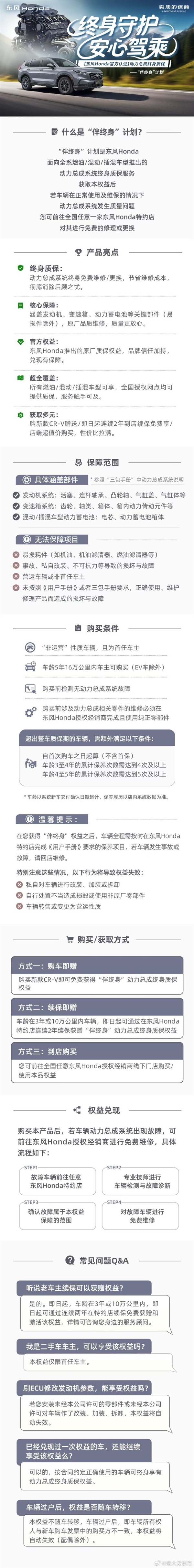 东风本田推“伴终身”动力总成终身质保产品 限首任非营运车主