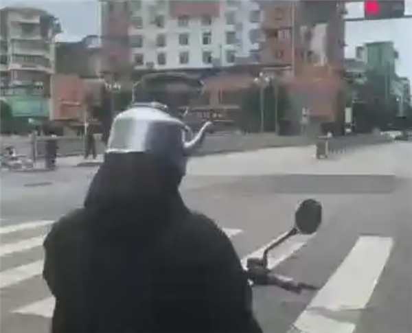 男子戴“炊壶头盔”骑摩托车被查 交警:不符标准 不能上路佩戴
