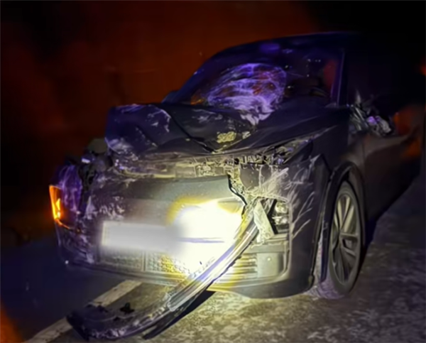 理想被似车般大的落石砸中车头 车主:我跟副驾都未受伤