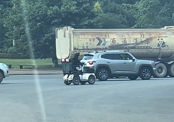 网友拍到一拉布拉多开电动车上路 狗主人:练习仅一个月