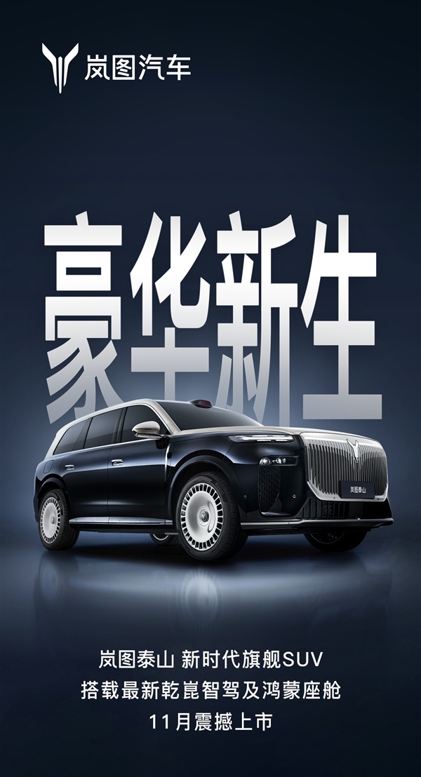 首发华为超500线激光雷达+鸿蒙座舱5.1!岚图旗舰泰山11月上市