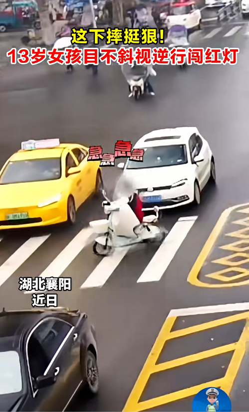 13岁女孩骑电动逆行闯红灯被撞 交警认定:负全责 监护人承担