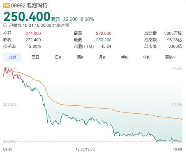 泡泡玛特Q3收益暴增超245% 海外狂飙370% 股价却大跌8.1% 创4月来单日最大跌幅
