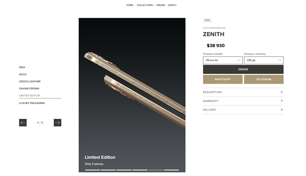 顶配卖27万 限量3台!iPhone Air定制版发布:黄金、鳄鱼皮打造超奢华