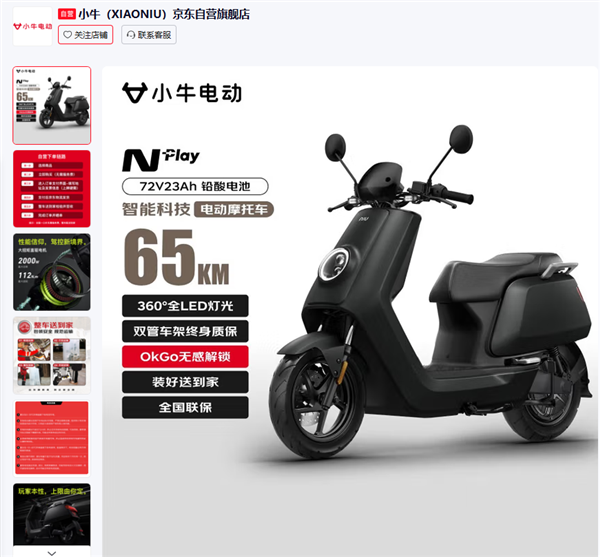 小牛京东自营旗舰店上线:目前只有一款车 京东送到家