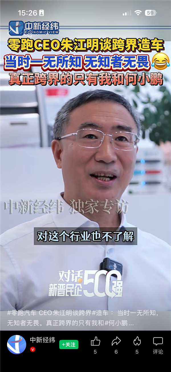 零跑CEO朱江明谈跨界造车:当时无知者无畏 真正跨界的只有我和何小鹏